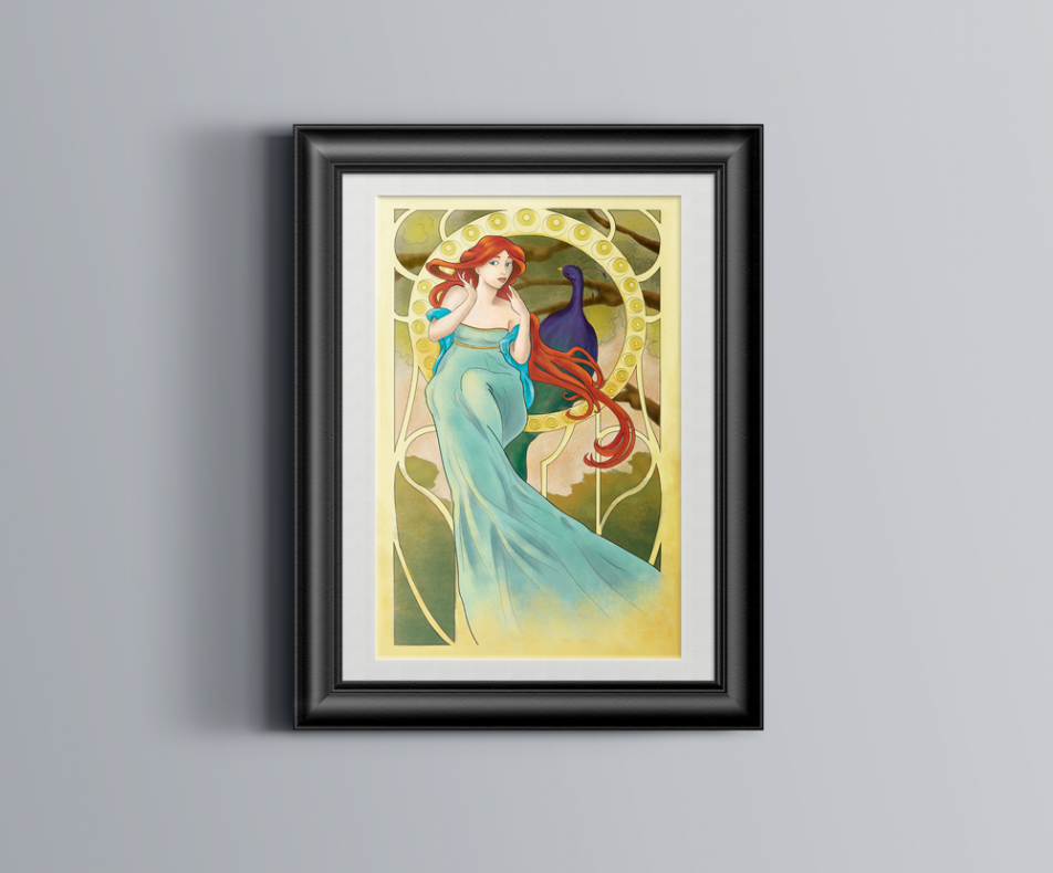 This Art Nouveau inspired illustration was a personal project that was a gift for a family member. The line art was made in illustrator and was colored in photoshop.